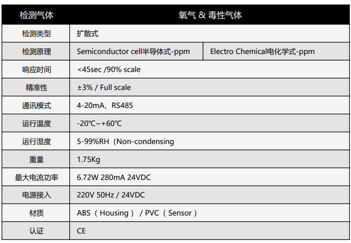 这是一款用于检测氧气或有毒气体的非防爆型气体探测器。集成接收器设计科快速掌握现场运行状态,且操作简单。