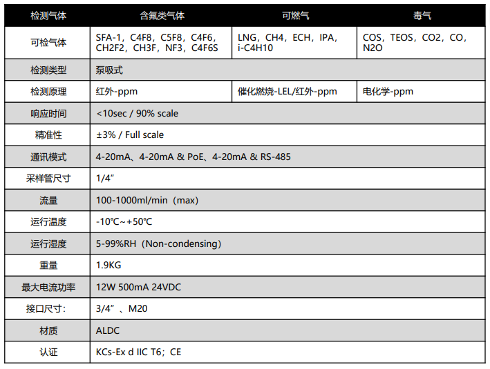通过减少探测器数量,在空间利用率和维护方面具备明显优势。设备支持4-20mA、RS-485 Modbus和PoE通信,并支持继电器接点输出,从而实现更加稳定灵活的现场安装。